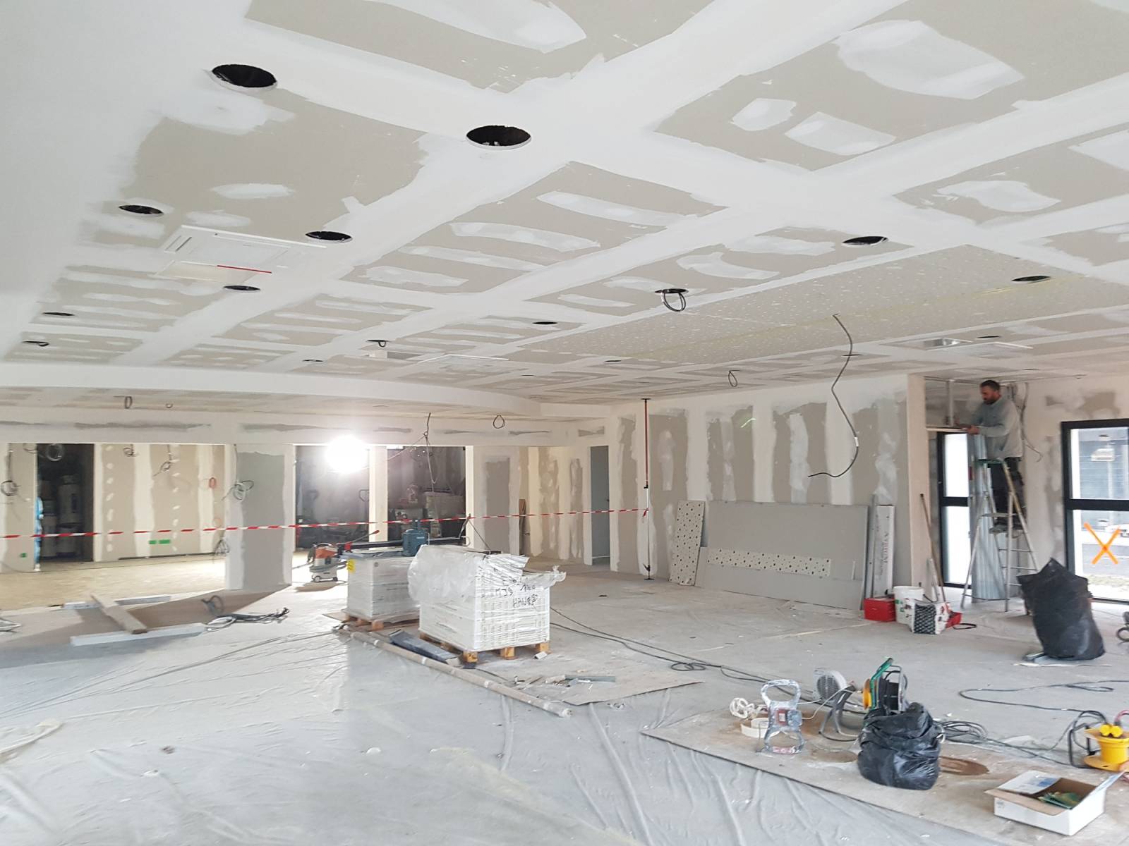 Nous réalisons diverses prestations de : pose de cloison en placo, doublage et faux plafond, coffrage pour dissimuler les gaines électriques ou autres éléments peu esthétiques.